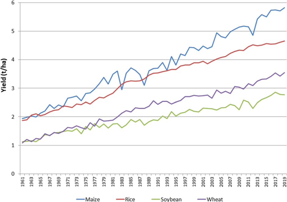 On September 14th, the Daily Sceptic reported on the work of four Italian scientists who have undertaken a major review of historical climate trends and concluded that a “climate emergency” is not supported by the data. They also noted a considerable recent ‘greening’ of plant biomass caused by higher levels of CO2. Helped also by big improvements in agricultural technology, food yields have soared. Four crops, maize, rice, soybean and wheat, are noted to provide 64% of human caloric intake.