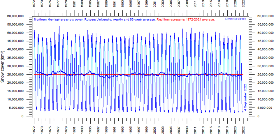 The Rutgers graph puts snow cover in the northern hemisphere on a wider timeframe. It is difficult to see much change over the last 50 years. Snow avalanches will continue to be unpredictable, and their overwhelming force will always have the ability to terrify humans – particularly if you use them to sell a controlling political agenda.