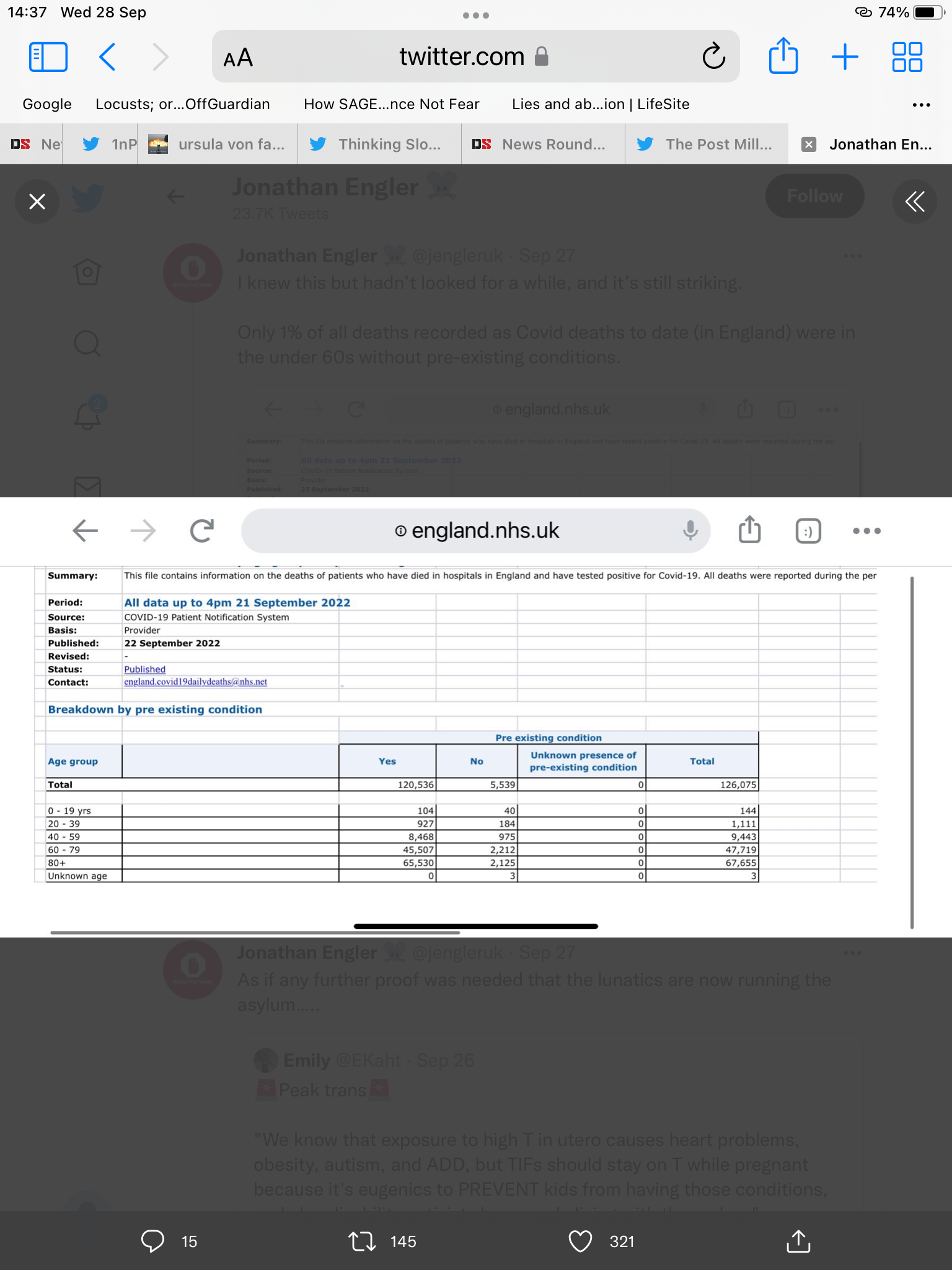 data from NHS England (just for England) up to the 21st September…for Covid deaths with no pre-existing conditions…