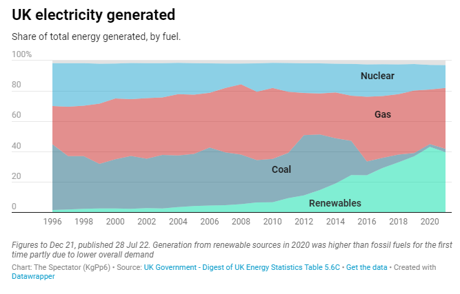 Ross notes that in 2021, gas accounted for 39.9% of overall electricity generation, while the contribution from renewable energy actually dropped by 9.3%, in spite of extra wind and solar capacity, “largely on account of low wind speeds”. Two of our remaining seven nuclear power stations have also been shut down this year.
