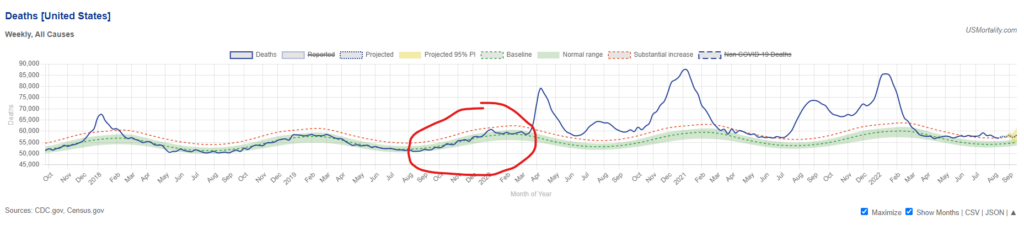 I’ve never seen that – thanks. I’ve long wondered if the big spike of deaths in the winter of 2020-2021 might have had something to do with so many people getting their flu shots during and before those big spikes in deaths. This possibility has never been investigated either.