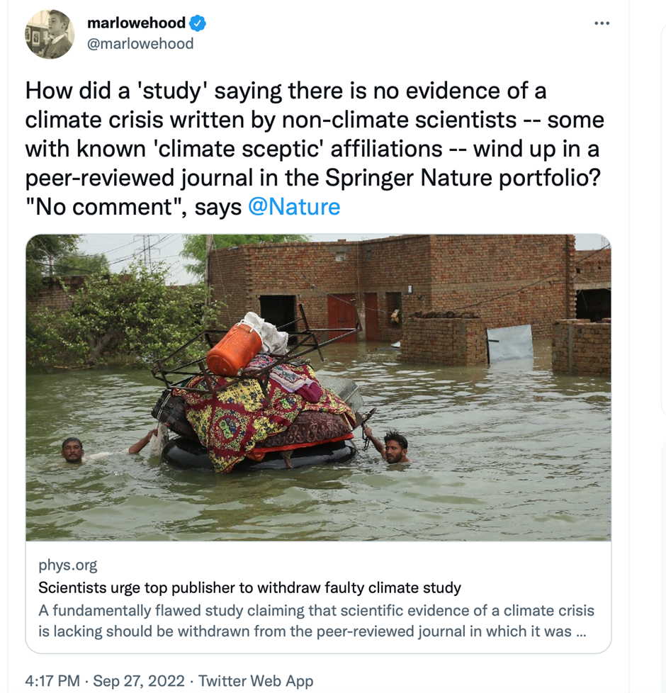 State-Owned Media Agency Leads Campaign to Cancel Science Paper Which Found ‘Climate Emergency’ Not Supported by Data