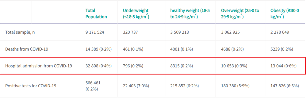 “Underlying Medical Conditions and Severe Illness Among 540,667 Adults Hospitalized With COVID-19, March 2020–March 2021” It’s correct that the number 1 risk factor from dying from Covid 19 in hospital was obesity with a 30% increased risk.