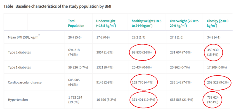 What surprised me here is that the absolute risk for the overweight and for the obese is still almost as marginal as for the rest.