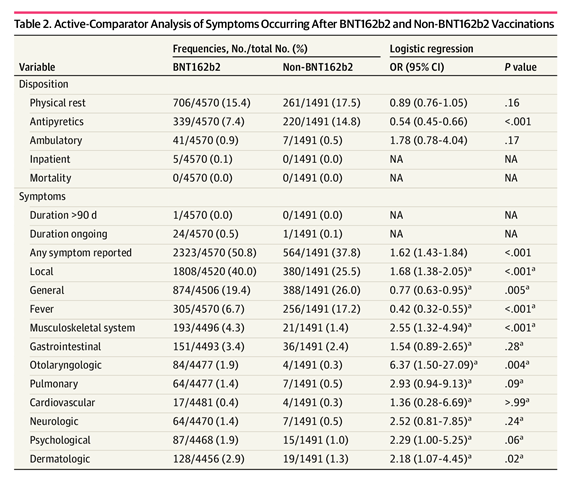 It concluded that the symptoms reported after Pfizer vaccination were “comparable overall” to those for other vaccines. Let’s see.