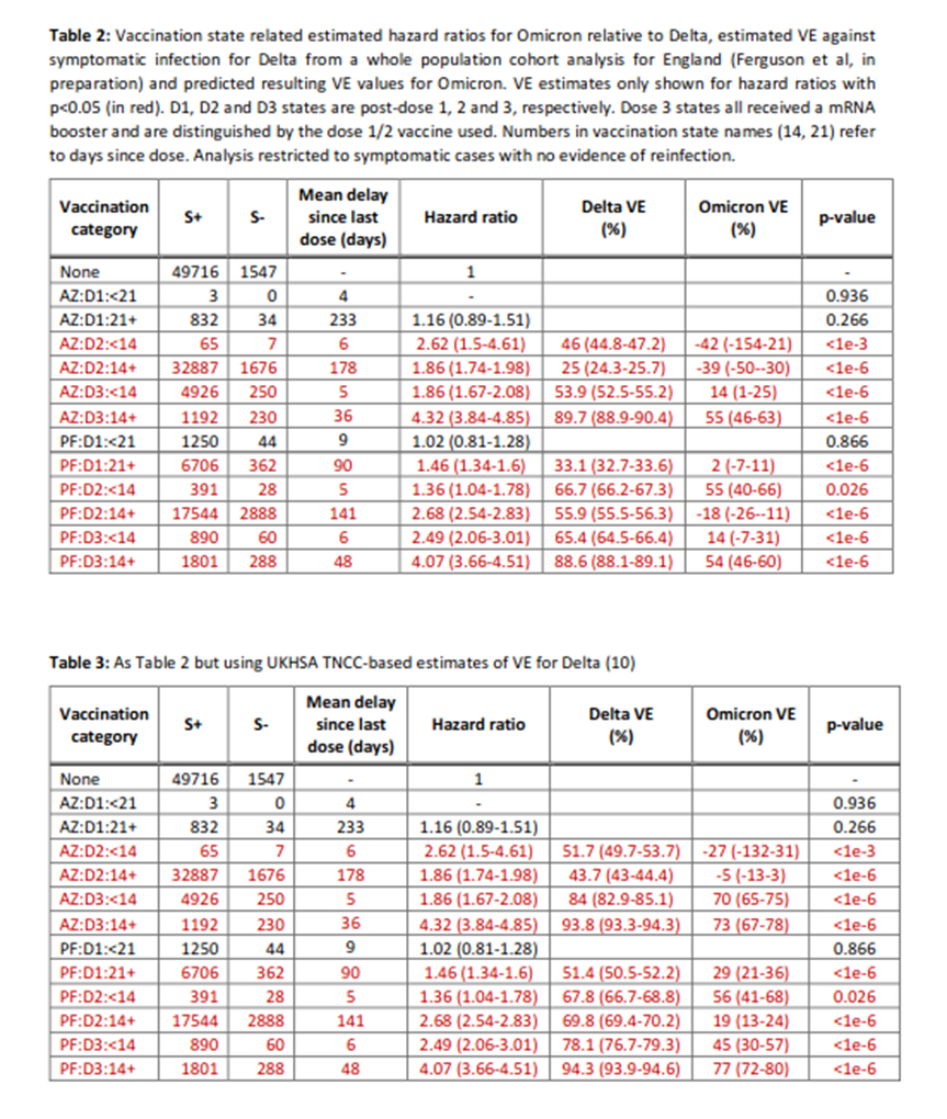 Is there any other evidence? One of the fundamentals of any measure of vaccine effectiveness is that whatever the method it should give a similar result. While most estimates of the Covid vaccines’ effectiveness use TNCC there are a few instances where a study has included the results of both a matched-cohort analysis and a TNCC analysis. There have been hints of this in many studies over the months; my favourite was a study undertaken last year by Imperial College. The results?