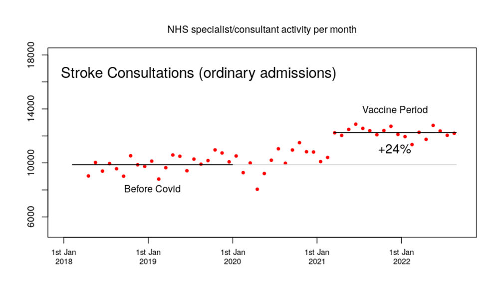 What’s also troubling is the way that the only side-effects that are discussed in the traditional media are the ones that have been officially recognised (albeit under duress). What about the increase in hospital consultant activity for stroke victims over the last 18 months?