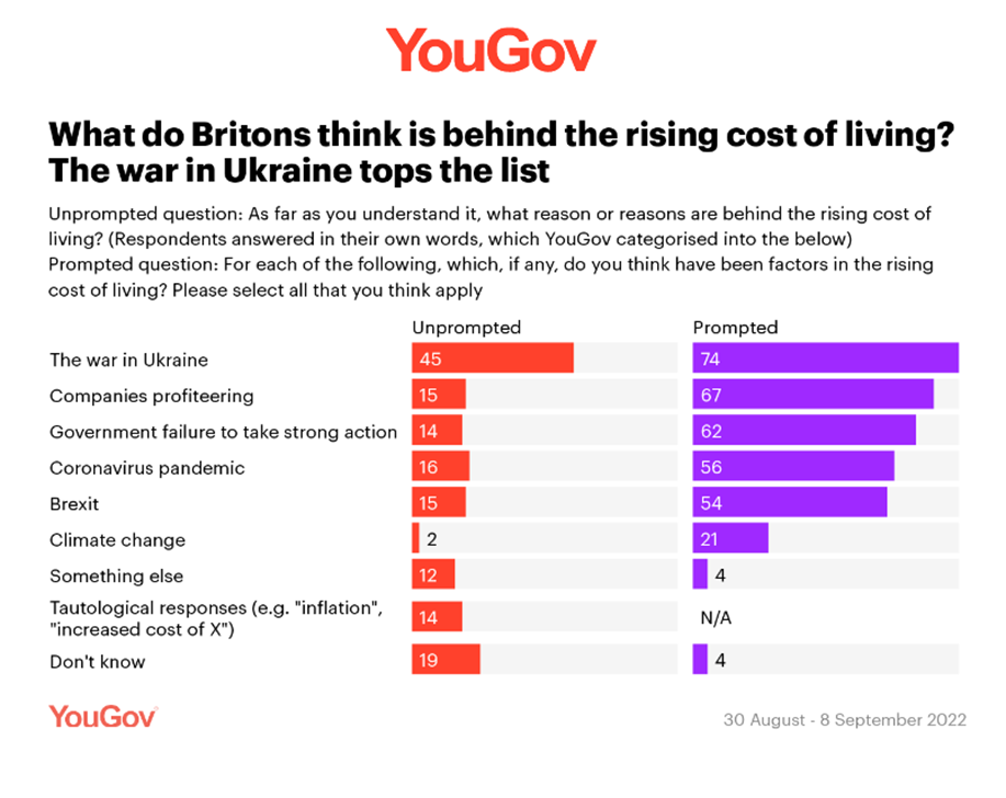 According to a recent YouGov poll, three times more Britons blame the war in Ukraine rather than other factors for the cost of living crisis.