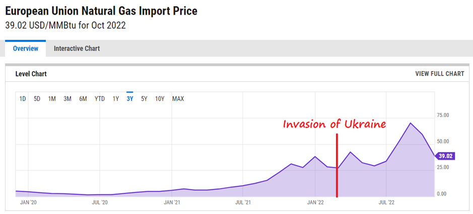 Gas prices have now fallen back to a position around 25% higher than when the invasion occurred.