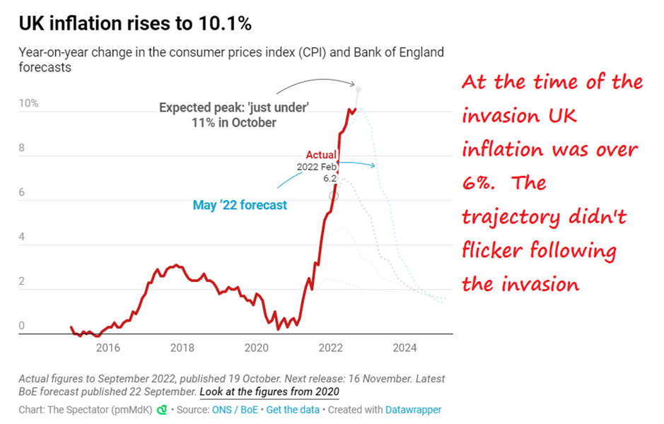 Let’s just look at what happened to the U.K. inflation rate around the time of Russia’s invasion of Ukraine.