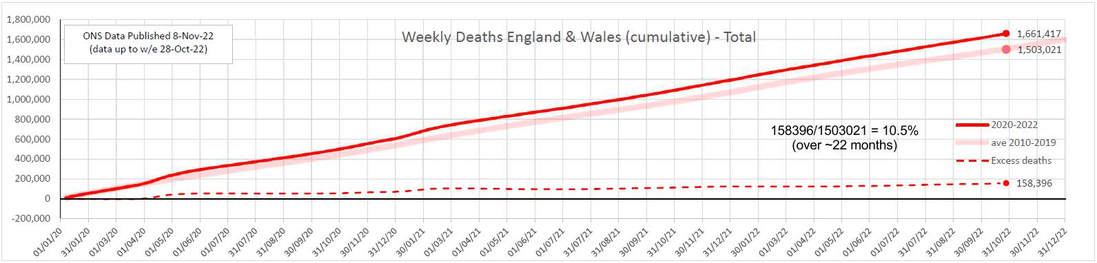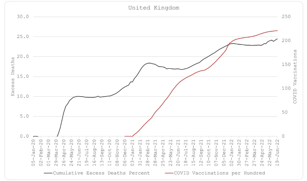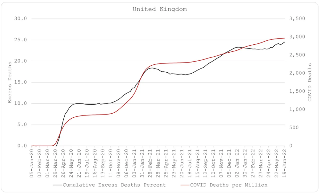 Has the UK really had 24.5% excess deaths over 2020-2022? That is more than twice what I have from ONS data.