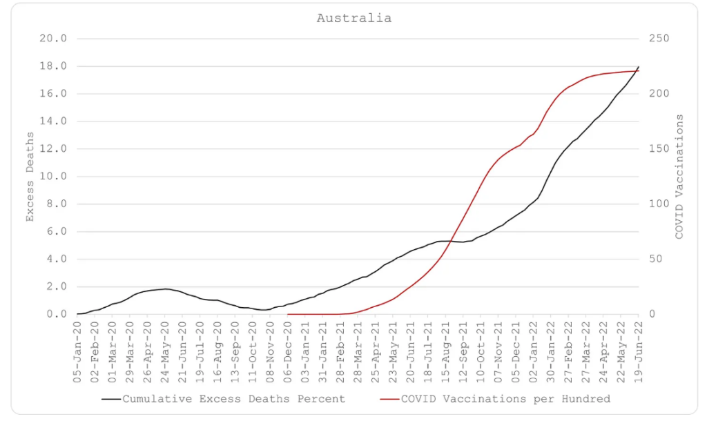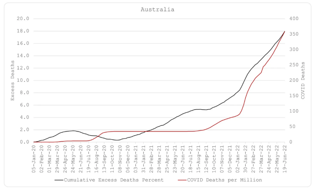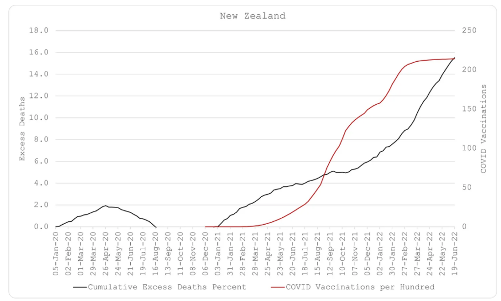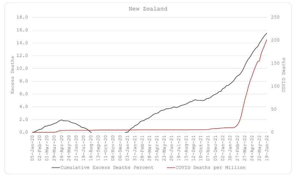 Secondly, experimental attempts at mitigating the spread of the virus through various ‘social distancing’ measures, including school and business closures, imprisoning healthy people in their homes, forced wearing of masks, etc. show very little evidence of benefit. Any specious evidence from prison islands (Australia and New Zealand) is ultimately proven futile as predicted by the world’s two best epidemiologists (Giesecke and Tegnell). The harms of these interventions are also apparent in the ultimate excess death numbers. Those responsible for implementing them should be held accountable for the deaths they have caused.