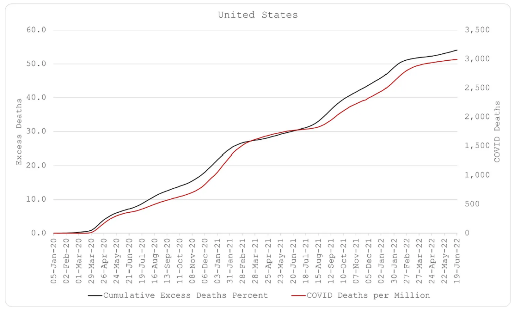 First, Covid exists and is deadly for some. This is evident given the very strong and consistent correlations between weekly excess deaths and weekly reported Covid deaths. I think it is also important to accept this fact given that there is very little resistance now to the assertion that Covid was manufactured in a biolab. Those responsible for making it are responsible for the millions of deaths it has caused.