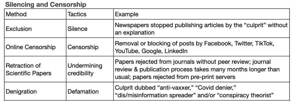 A recent publication on censorship and suppression and its tactics and countertactics drew our attention. The study was based on interviews with established scientists “who were censored for their heterodox views on COVID-19”.