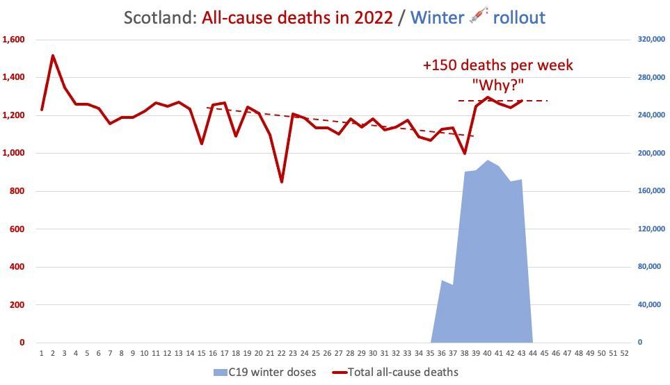 Stop Press: Scottish Unity Edinburgh Group sent me this chart showing a similar correlation in Scotland between deaths and the autumn booster rollout.