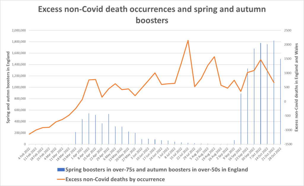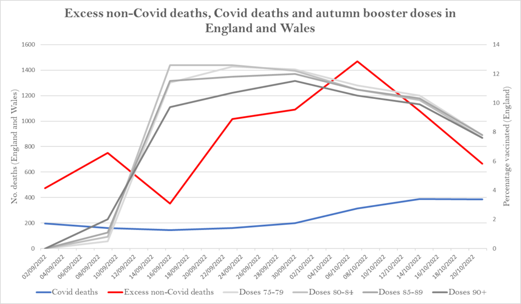 I have previously noted what appeared to be a correlation of excess non-Covid deaths with the rollout of the spring vaccine booster in April and May.