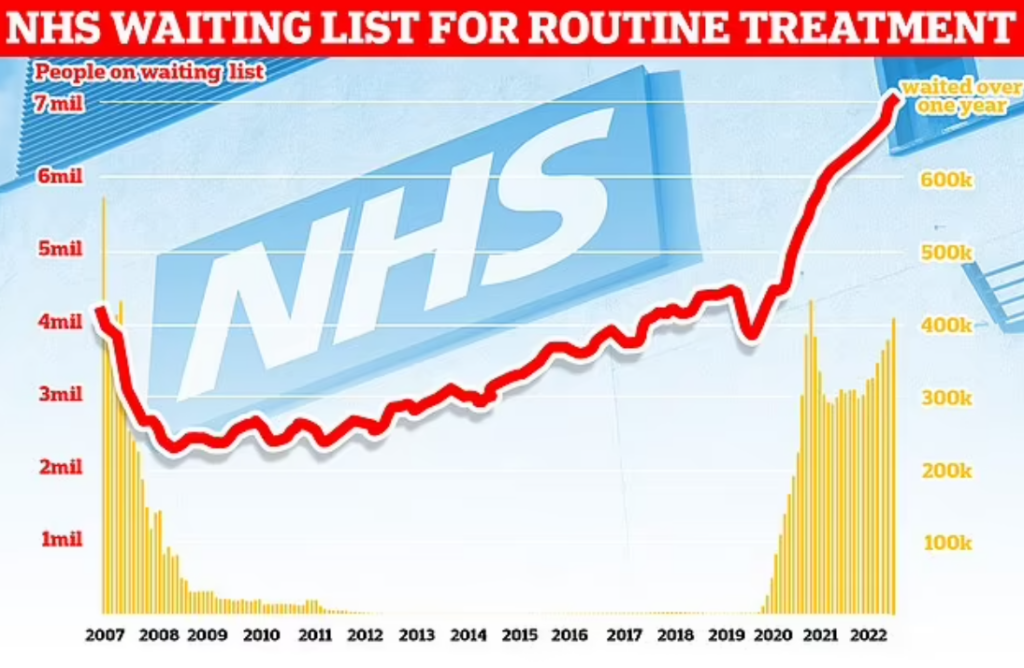 More money, more staff, fewer joining the queue – yet fewer patients actually being treated and ever-lengthening waiting lists. And now a load more tax to fund yet higher NHS spending as the budget increases by a further £3.3bn.