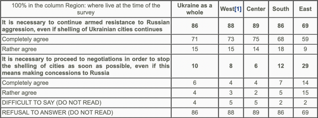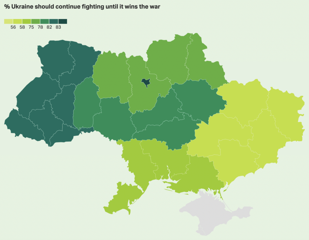 What’s more, the American polling company Gallup ran a similar poll, and again found that the vast majority of Ukrainians want to continue fighting. It also found that support for negotiations was higher in the East, and lowest in the West.