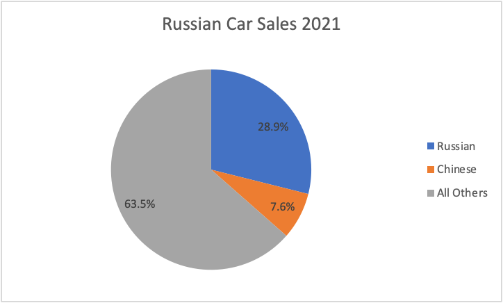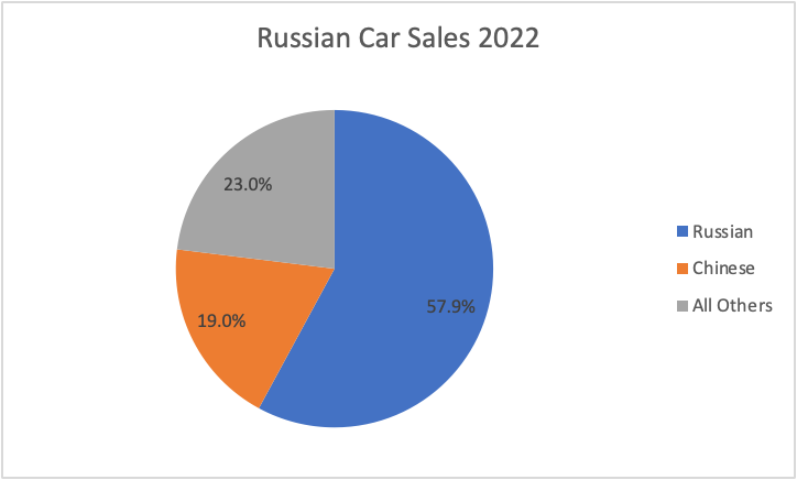 It was not hard for the Russians to rebrand McDonald’s outlets within the country and keep them operating. All they really lost is the brand. But what about an industry that requires manufacturing and engineering? That should be far more difficult to ‘substitute’ than a restaurant chain. Let’s look at the Russian car market in detail to get a sense of how it has been impacted by sanctions.