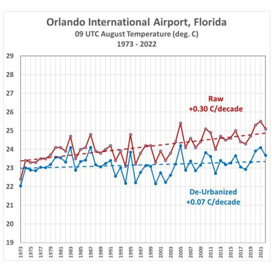 Quelle surprise. Being a former professional pilot I’ve been saying this for years but people don’t listen. Any mass of concrete or tarmac will have a ‘heat island’ effect. Then jet engine exhaust is over-laid and you get 40 deg C. Anyone can observe the phenomenon for themselves. Check your motor car temperature read out once it has settled on the move. When you enter a motorway or main dual carriageway you will observe a rise of up to 3 deg C which will then fall again once off the motorway and back on country roads. Yet still the alarmists persist.