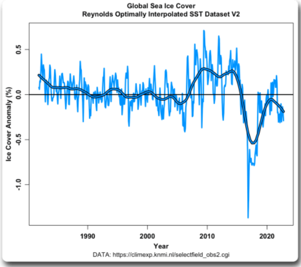 Of course, there are many sceptical scientists who seek answers to the cyclical nature of global ice outside the restrictive confines of ‘settled’ climate science. As the Daily Sceptic has often reported, short-term movements of ice are affected by often incalculable atmospheric heat exchanges, ocean currents and many other natural climatic variations.