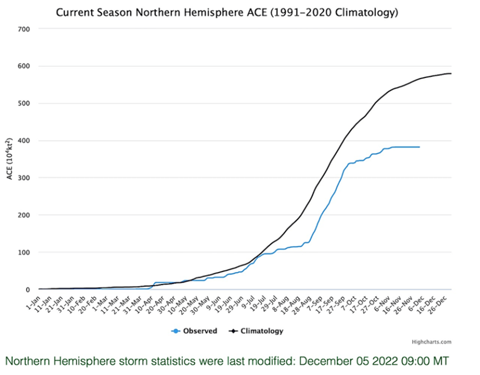 Massive Reduction in Cyclonic Storm Energy Across Northern Hemisphere in 2022