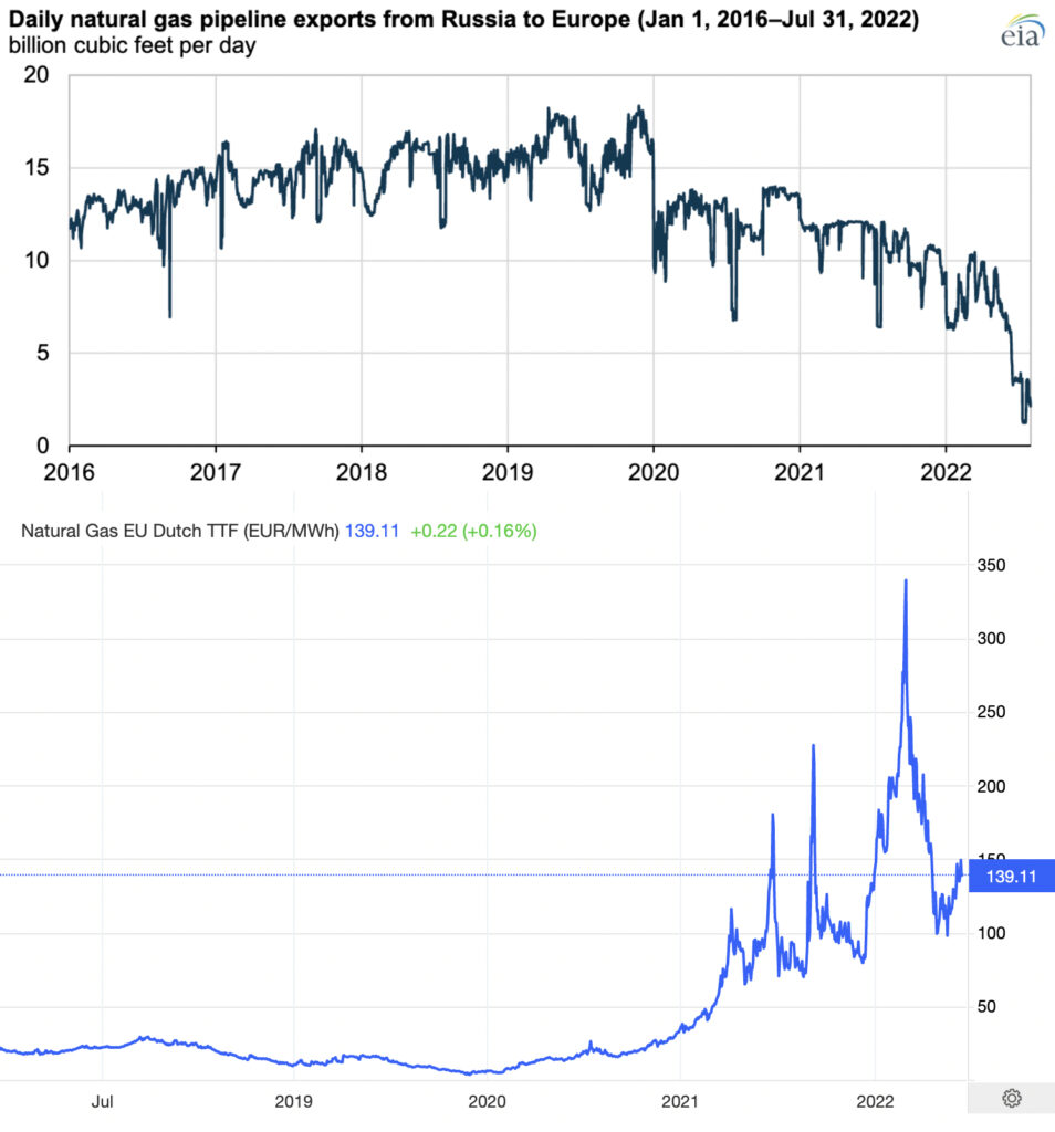 Due to lack of investment, based on a lack of foresight, the European energy crises is self-made with supplies reliant on Russia´s comparatively cheap, geographically close and almost unlimited natural gas reserves accounting for 45% of all EU gas imports in 2021. By deliberately choking off these supplies Europe is facing the prospect of rolling blackouts, closed factories and a deep recession. Europe’s energy crisis is a consequence of green politics and climate change insanity which led to EU governments banning fracking, closing coal and nuclear plants and the virtue signaling sanction of Russian gas deliveries. Windmills and solar panels are not enough to power modern economies, especially on cloudy, windless day – if Europe wants gas this means fracking. Half of Germany’s coal imports, essential to the steel production, manufacturing industries, generating electricity and heating homes came from Russia. Russian gas, oil and coal are embedded in the German economy. While some European governments, primarily the French, have pushed Germany to break its dependence on Russian energy, France´ s reliance on Uranium for its nuclear power stations is cloaked in silence as directly and indirectly Russia holds a significant control over half of the world’s uranium supply. Fortunately, European gas… Read more »