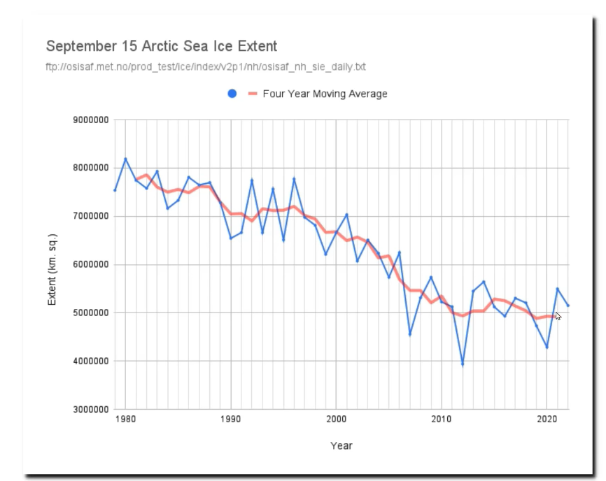 Spot on article. The fact that they hide the data is 100% correct and very sad. This website below used to be fantastic and had masses of historical surface area data about ice extent in both the Arctic and Antarctic, but now it only shows the daily satellite pictures (these seem to have stopped in Sept 2022) with no surface area data.