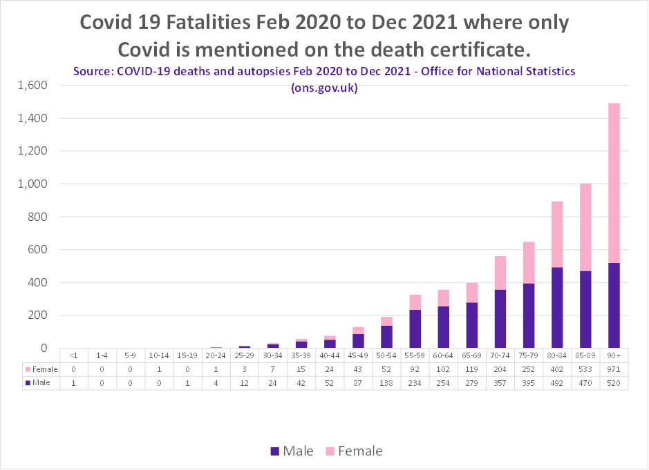 In case you weren’t aware of it, Professor Norman Fenton recently extracted an interesting response from the Office for National Statistics. His request and the response can be seen here. It covers the number of Covid deaths, where only Covid was mentioned on the death certificate, from the start of the pandemic to the end of December 2021. The answer was just under 3.5% of the total. To many this has been a revelation.