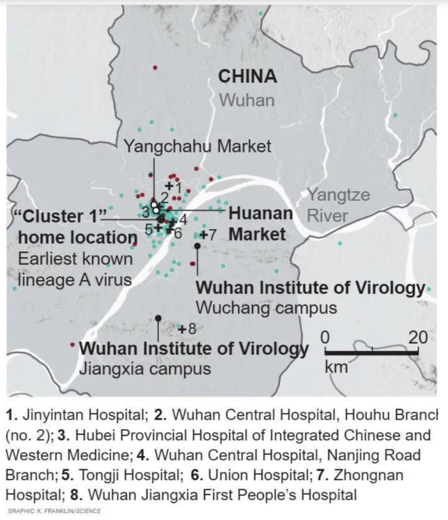 ‘...despite the fact that an article in Science appeared to have already put the theory to rest over a year ago by showing that the initial cluster of COVID-19 cases in Wuhan was located on the opposite (left) bank of the Yangtze River from the Wuhan Institute of Virology,’