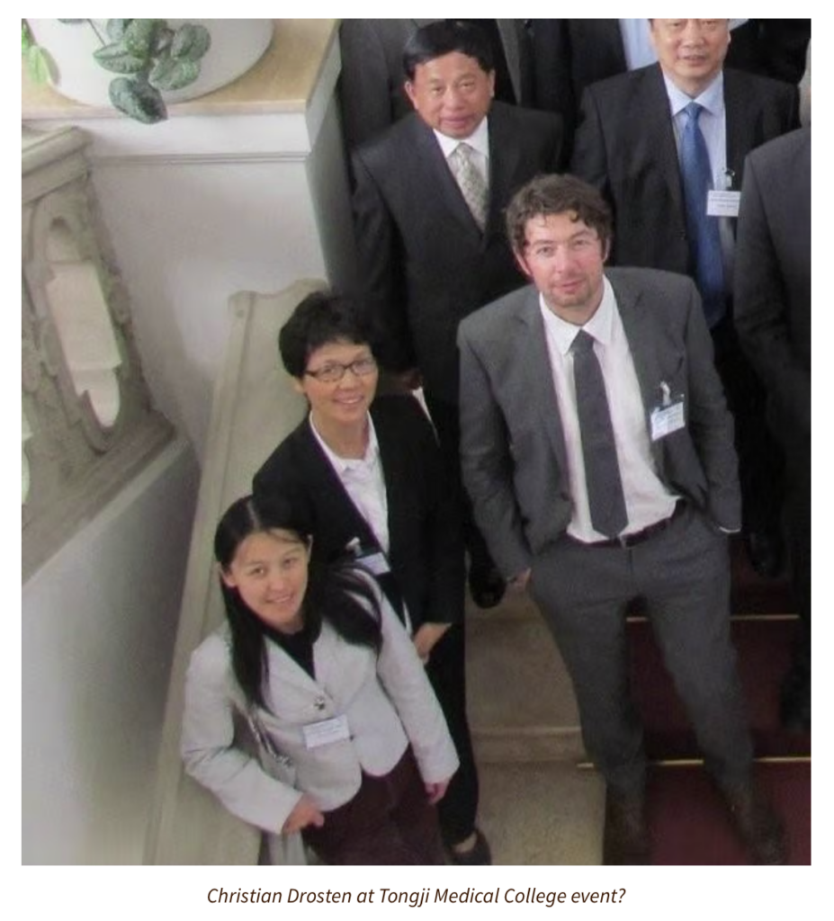 Postscript: We now know that the above photo of Christian Drosten and Shi Zhengli does not come from a Tongji Medical College event, but rather from a 2015 symposium in Berlin which was organised by none other than Ulf Dittmer, who would subsequently become the Co-Director of the German-Chinese virology lab in Wuhan. At the time, Dittmer was the Director of a German-Chinese research network which included the Wuhan Institute of Virology as partner. See my follow-up article here, and for still more details, my more recent article here.