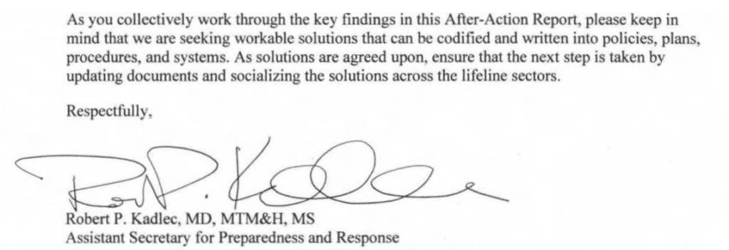 I’ve only followed up on this report in light of growing focus on the person who coordinated Crimson Contagion: Robert Kadlec, who served in the Trump administration as Assistant Secretary of Health and Human Services, Preparedness and Response. It was he who also ran the Covid response between HHS and the Department of Homeland Security.