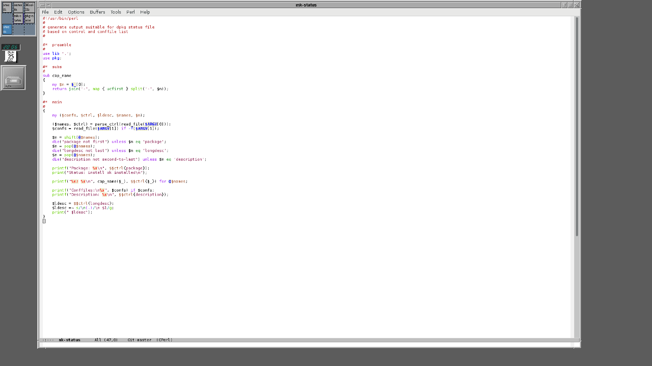 OTOH, the disk in my work/ leisure PC died on Wednesday and while I kept most of my files, I’ve lost the complete dpkg (Debian package manager[*]) database, so I’ll have to write a script/ program to restore it based on the list of names of installed packages. Hence, I can’t complain about not knowing how to kill the time.