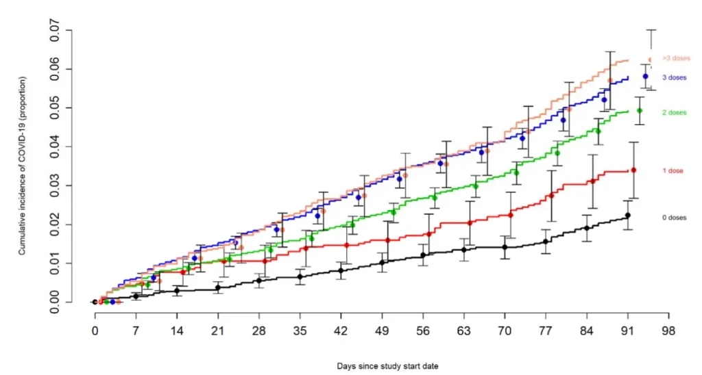 Those results suggest that repeated vaccination with mRNA vaccines may reduce the body’s resistance to the virus, which may explain why the probability of infection and re-infection seems to increase in direct proportion to the number of injections a person has had. One can only wonder if this also explains to some extent the large increase in chronic Covid symptoms, organ damage and excess deaths. In his recent post on the subject, investigative journalist Alex Berenson called for immediate restriction of booster campaigns, as well as research into the correlation between autoimmune diseases and Covid vaccinations.