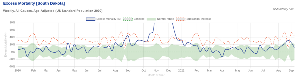 One good thing about South Dakota taking it on the chin early on in Fall 2020 is that even the dreaded Delta didn’t seem to have any teeth in 2021. Kinda like in Sweden. In the long run, South Dakota ended up an average state in terms of cumulative excess death rates.