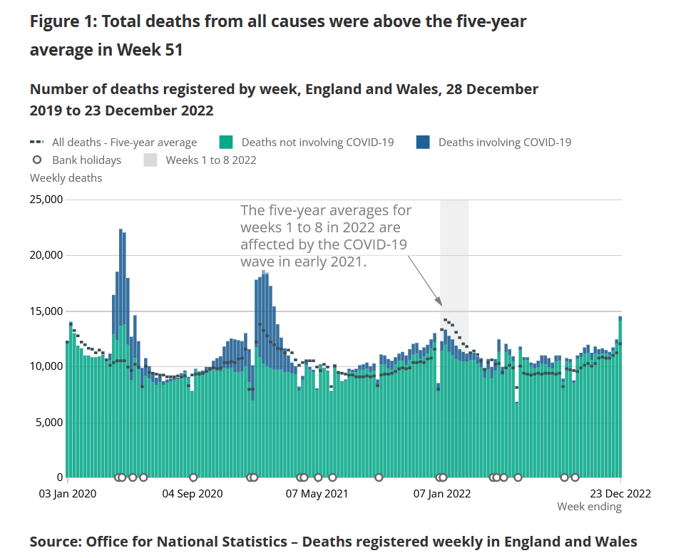 Deaths registered weekly in England and Wales, provisional: week ending 23 December 2022