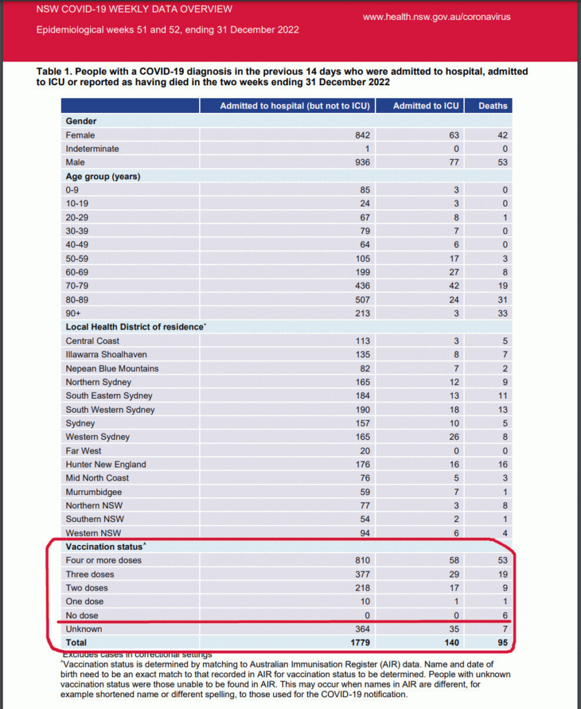 They will not be helped in that by the NSW health authority, which has decided to drop vaccination status from its weekly reports, as from December 31st.