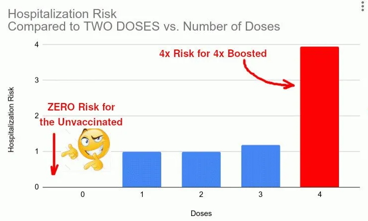 One glimmer of hope: my nurse friend says that whereas everyone at her hospital was bullied into receiving booster doses up to the third shot, the pressure has now stopped over fourth doses and beyond. At least hospital staff, it seems, are recognising the real-world data that regulators still wish to hide.