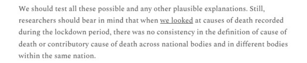 The mainstream media, the medical establishment, and the political class are determined not to undertake the difficult work of understanding excess mortality causation because they fear the result will not be to their likening. They’re all utterly corrupt.