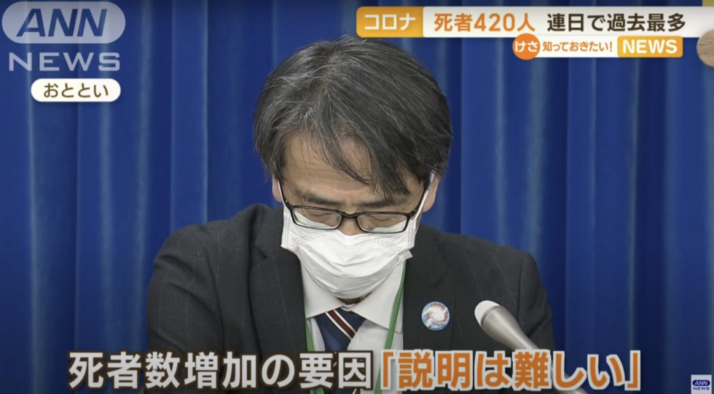 What could possibly explain this? Let’s ask Takaji Wakita, Chairman of Japan’s Covid Response Advisory Board: “The cause of the rise in Covid deaths is hard to explain.”