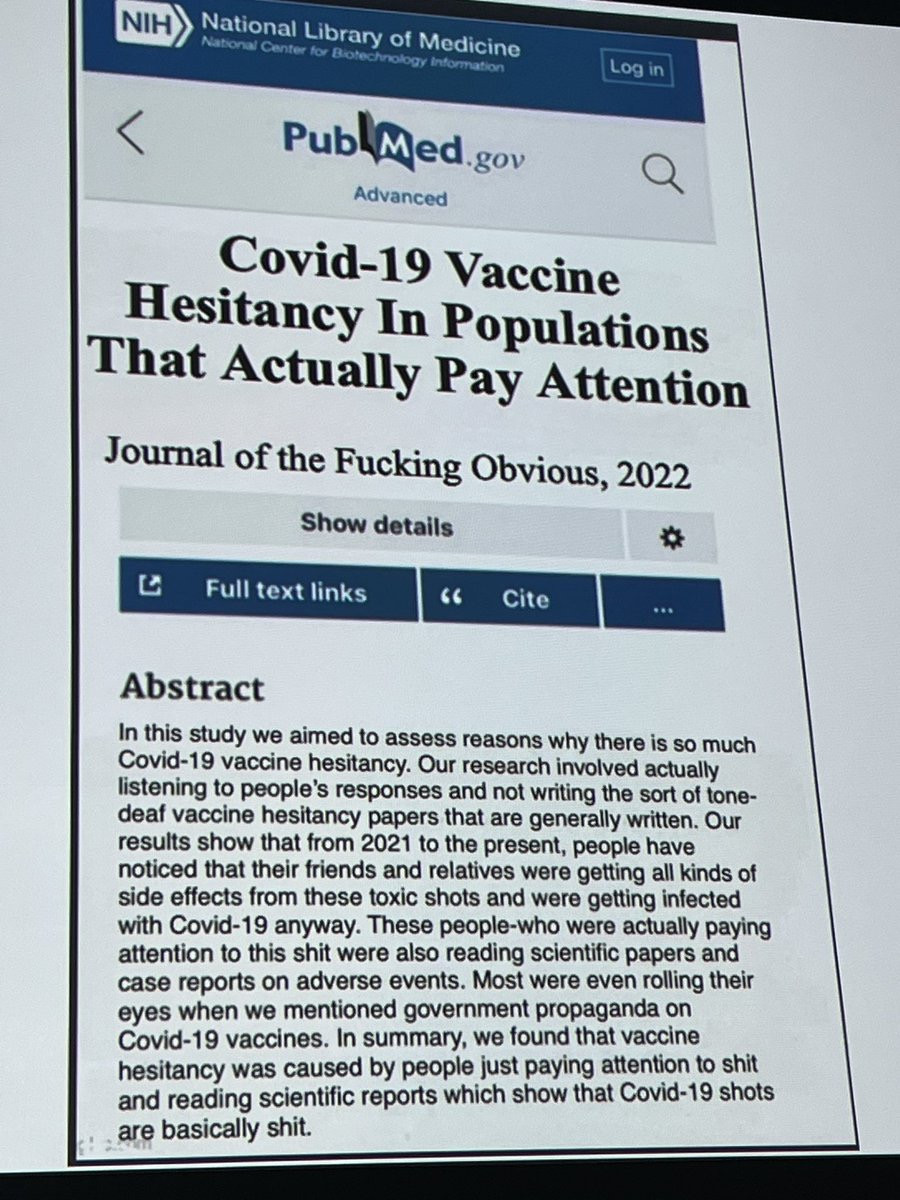 Regarding the CDC and their extremely lame ‘investigation’ of a causal link between Covid jabs and stroke, this is a handy collection of evidence demonstrating the safety signal for strokes was present as early as May 2021. It’s plain for all to see now, given the development and imminent unleashing of many more mRNA injectables onto the market, that this industry is way too lucrative to ever go away, despite the terrible safety and efficacy performance of the current crop, therefore constant cries for the removal of these things are completely futile. Not going to happen. It doesn’t matter what data are produced to illustrate the dangers or how many adverse event reports are recorded in each country. The onus is now on the individual to vote with their feet and just not comply. We can’t trust the regulators to protect us so we have to just take some accountability and choose to not partake in this proven unsafe and unnecessary debacle. Creating a lack of demand with our refusal to comply is the only chance we have because it’s pretty obvious no amount of evidence that these things are harmful will ever be enough to cease manufacture. The sceptics… Read more »