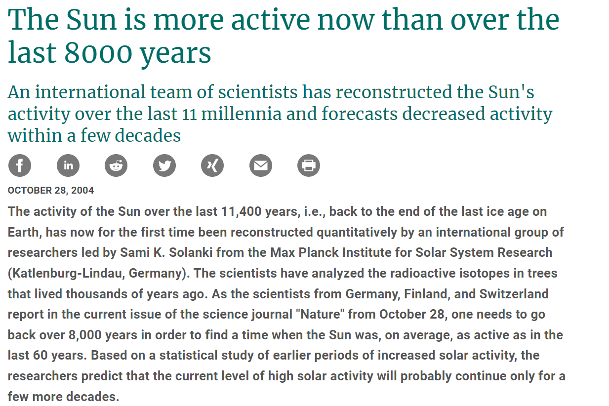 May I remind to the respected author that the grand solar minimum in 2020-2053 is predicted in 2015! by our article in Nature Scientific reports Zharkova et al, 2015 https://www.nature.com/articles/srep15689.