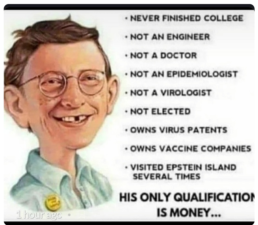 In my opinion, no-one has given authentic voluntary informed consent to the worse than useless experimental Covid-19 jabs. No-one. People have been fed a tissue of lies about this grossly disproportionate and ill-targeted ‘Covid-19 response’ from the beginning. It’s been a manufactured crisis from the get go. They’ve tried this before, beating up these scares, e.g. Swine flu/H1N1 in 2009, the Ebola scare in 2014, and Zika in 2015-2016. Those previous scares fizzled away…but they went for it this time, batshit over-the-top crazy…and here we are. How did this happen? How did we end up with the INSANE plan to jab and test the entire world population, against a disease it was known from the beginning wasn’t a serious threat to most people? WHO was responsible for this? Let’s look at Bill Gates for example, at his GatesNotes, published on 30 April 2020: What you need to know about the COVID-19 vaccine, in which he said: “One of the questions I get asked the most these days is when the world will be able to go back to the way things were in December before the coronavirus pandemic. My answer is always the same: when we have an almost perfect drug to treat COVID-19, or when almost every person on the… Read more »
