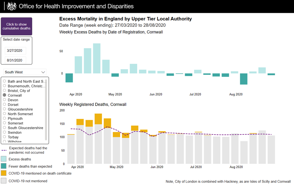 In a recent Daily Sceptic article, Nick Bowler looked at the rise in deaths other than respiratory illnesses. In Figure 4 you can see how deaths in England from some of these non-respiratory illnesses peaked during this first lockdown. How many of these excess deaths were down to policy? No doubt exactly the same pattern repeated itself in Cornwall: deaths of non-respiratory causes increased significantly due to the anticipation of a pandemic rather than because of a pandemic.