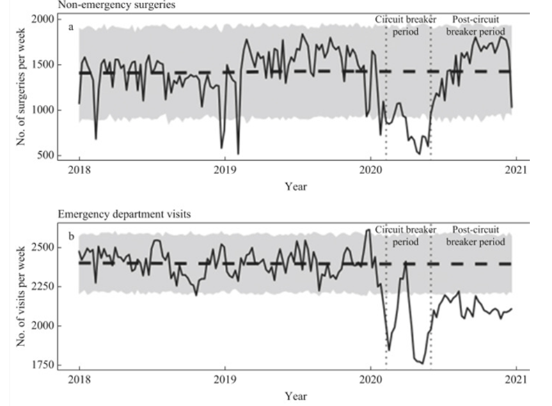Singapore did have a spring 2020 lockdown and some people stopped accessing healthcare. Emergency department visits reached a nadir of 75% of normal.