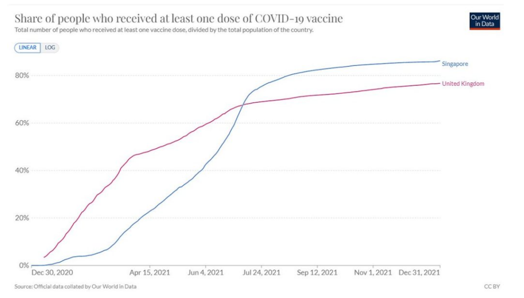 Covid accounted for 3% of deaths in Singapore in 2021 but 14% in England.