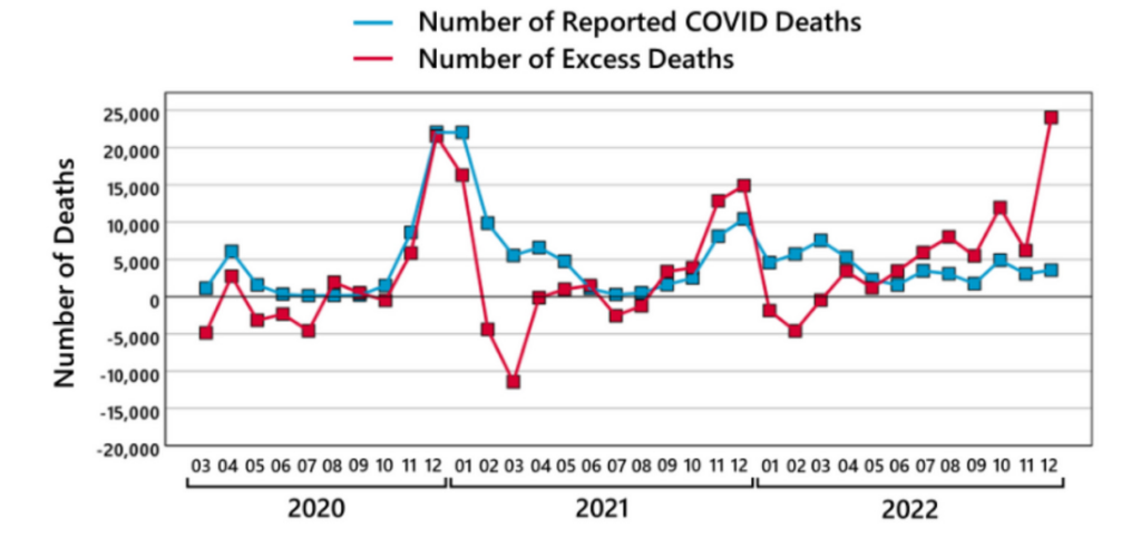 I suspect the German and Dutch numbers are also pretty similar. There was excess/elevated mortality since March 2022, rising sharply from mid-November to end December. StatisticsNetherlands publishes mortality figures every week on Friday in an Excel file, these get incorporated in the NL corona dashboard every week in a line chart showing expected mortality – excess/elevation is very easy to see. For the first 3 weeks 2023, when there was high excess mortality, although declining from the end-December high, the numbers were MIA on the corona dashboard. They were only published again last week, when the line hit expected mortality. Media/twitter was starting to pay attention to the excess mortality, I suspect that’s why there was no update for 3 weeks. The November/December excess is probably attributable (or in any event will be attributed) to an early flu season. This is one explanation, although considering there should be no dry timber left.. maybe it is simply the flu, exacerbated by the fact that people were not exposed to regular viruses for over 2 years, maybe exacerbated by an immune system worn out by repeated jabbing in the at-risk age group, who had received jab no. 5 from mid-September onward. The… Read more »