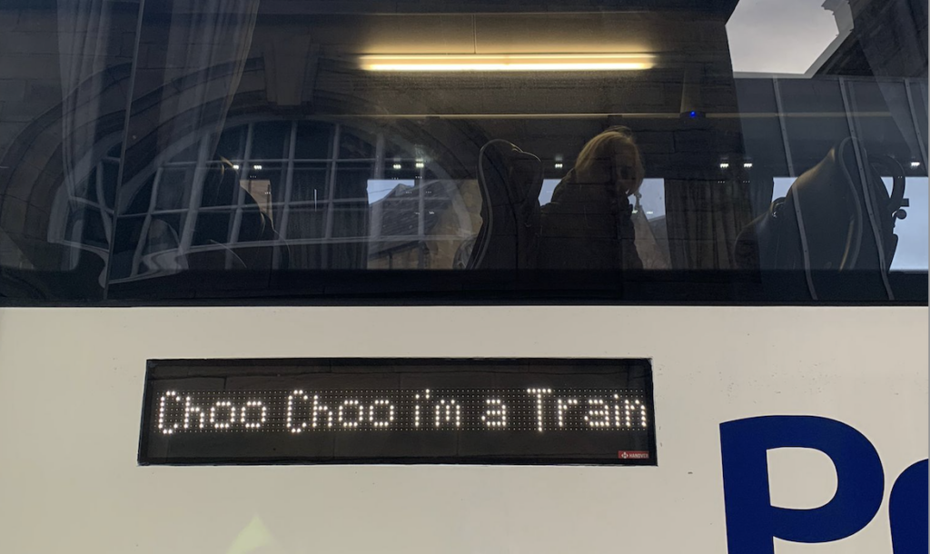 Travellers arriving at York railway station yesterday were thrilled to discover that the trains weren’t running to Newcastle and there was a replacement bus service instead. As you can imagine, the mood was light-hearted – even festive. Think of the smiling faces, the gay laughter, the sense of fun that was rippling through the assembled crowd on the concourse. It was the perfect moment to inject a sardonic, tongue-in-cheek piss-take, and the people in charge (I use that phrase loosely) were equal to the task. Their brilliant wheeze: to have the replacement coaches arrive with the legend “Choo Choo i’m [sic] a train” emblazoned where one would normally find information about the destination.