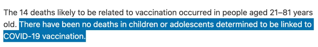 The November 2022 TGA Safety Report states that, “There have been no deaths in children or adolescents determined to be linked to COVID-19 vaccination.” But the assessment reports indicating the causal role of the Pfizer vaccine in the cases of the seven and nine year-old children were released to Dr. McCann in July 2022.