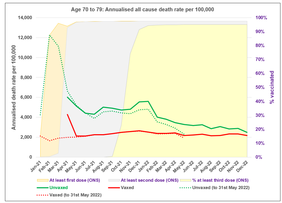 Note how the unvaxed mortality to May 2022 has been revised upwards but the vaxed mortality is pretty much unchanged (the May 2022 vaxed figure is revised upwards because of late reported deaths so ignore that but otherwise it’s neraly identical). What on earth has caused that unvaxed mortality change to happen?